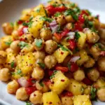 A vibrant salad packed with sweet pineapple, juicy mango, and creamy chickpeas, perfect for a refreshing meal or snack.