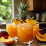 The tropical undertones—thanks to pineapple and mango—elevate the flavor from basic peach juice to a full-on vacation in a cup. People love how it feels indulgent without being overly sweet or artificial. It’s colorful, hydrating, and a conversation starter, especially when served in a punch bowl or drink dispenser filled with floating citrus slices and peach rings.