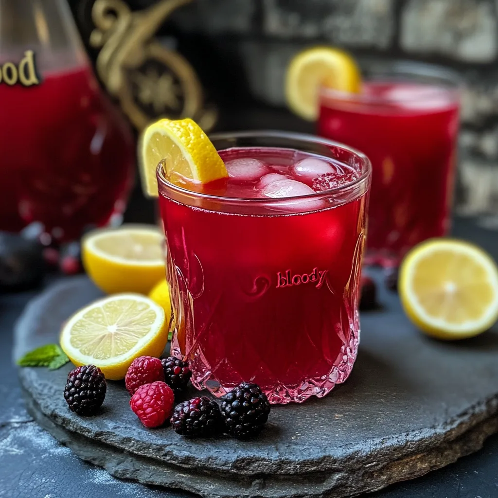 Pour the Vampire’s Blood Lemonade into the glasses over the ice. Garnish with lemon slices for a bright yellow contrast against the deep red liquid. For an eerie twist, add fresh raspberries or blackberries that float on the surface like “blood clots.”